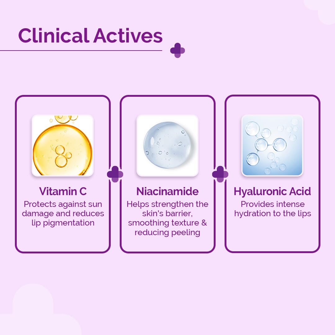 Reduces Lip Pigmentation Fade unwanted lip discoloration with Vitamin C, a powerful antioxidant that shields lips from harmful UV rays and inhibits melanin production, revealing a brighter, more even-toned smile.